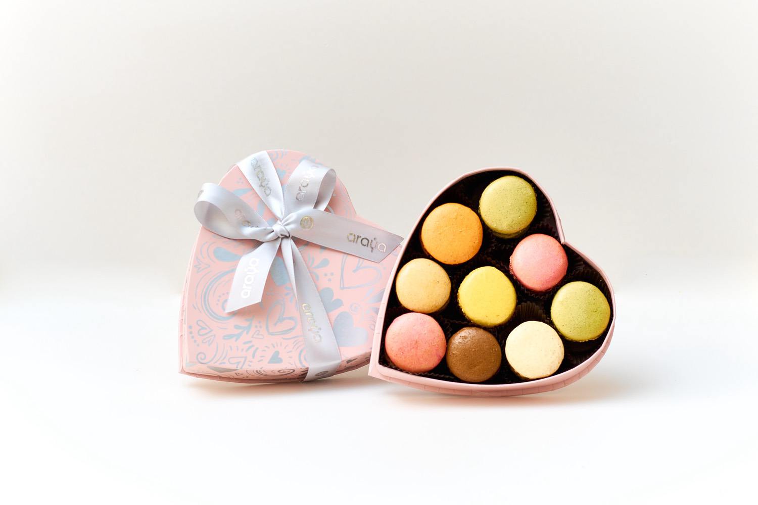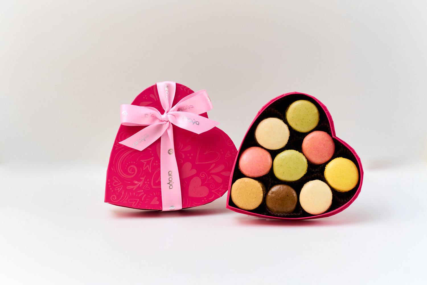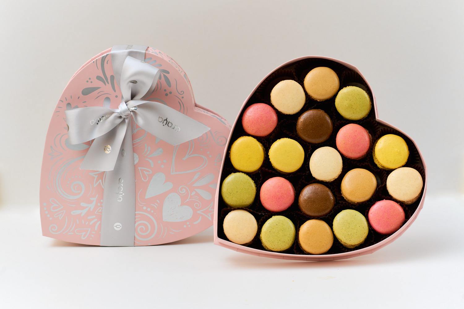 Say I love you with this beautiful selection of macarons in a beautiful heart-shaped box with a satin ribbon bow. Your box will come with an assortment of the following flavors: