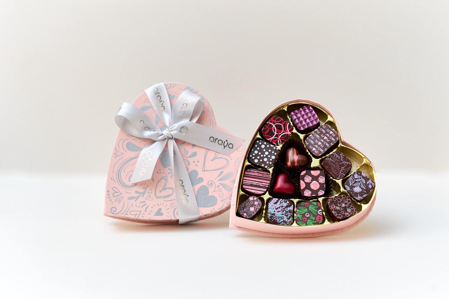 Say I love you with this beautiful selection of handmade chocolates in a beautiful heart-shaped box with a satin ribbon bow. Single origin ultra-premium chocolate is combined with only the finest ingredients to create the most exquisite chocolate pieces.