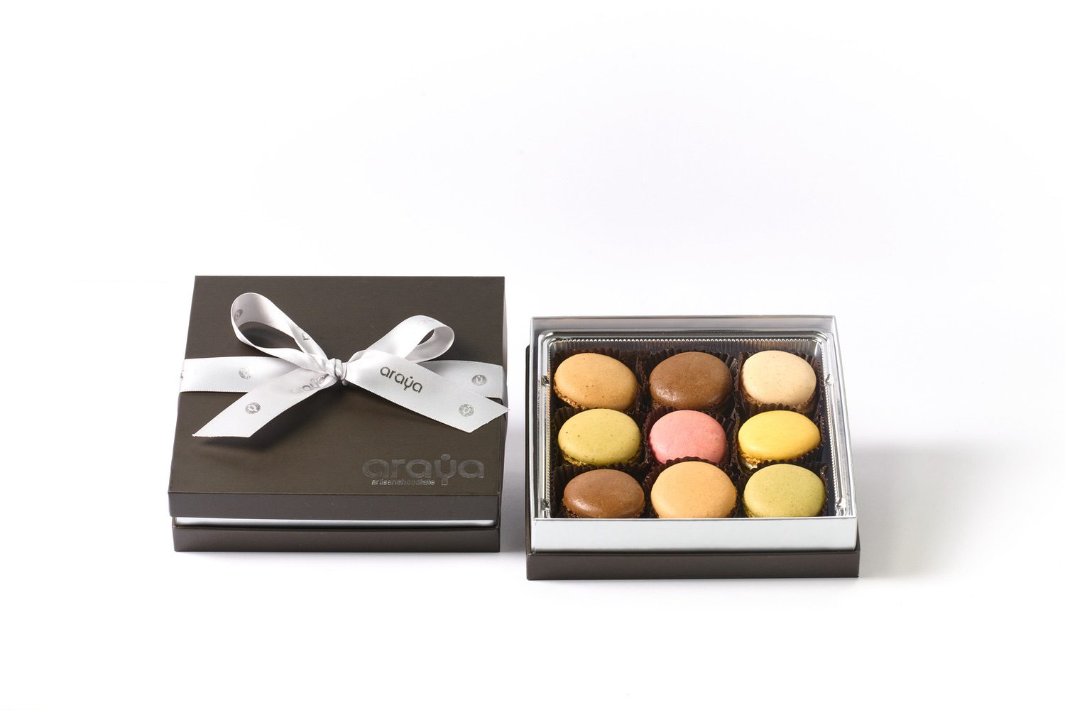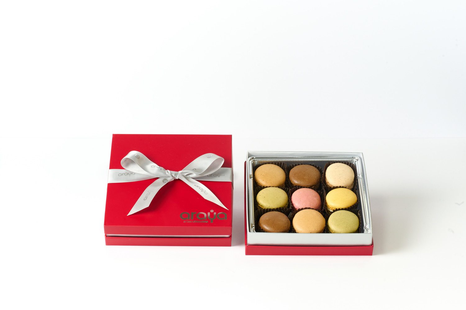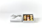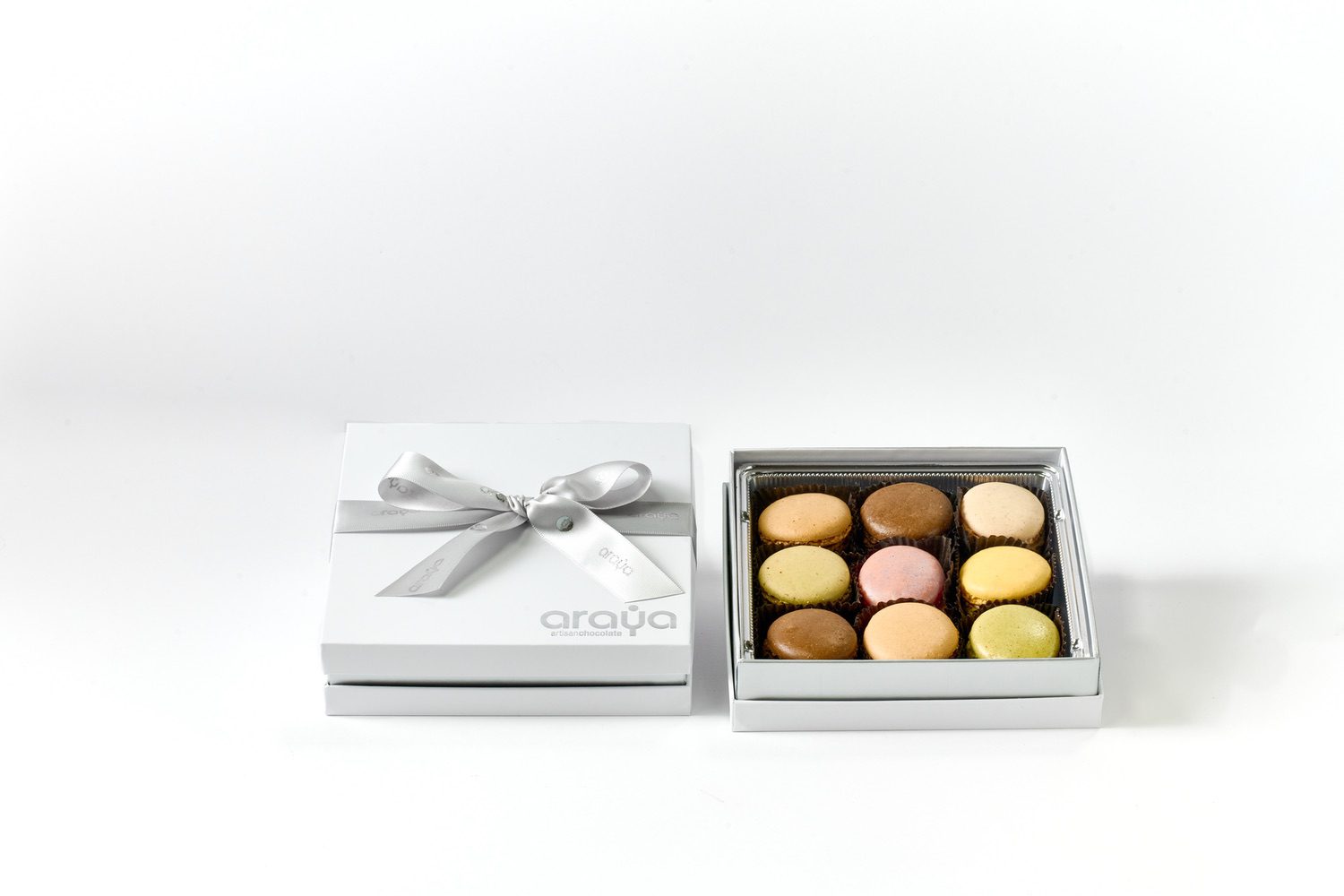 This box gives you an exciting variety of flavors that include: Chocolate, Vanilla, Pistachio, Lemon, Raspberry and Mocha.