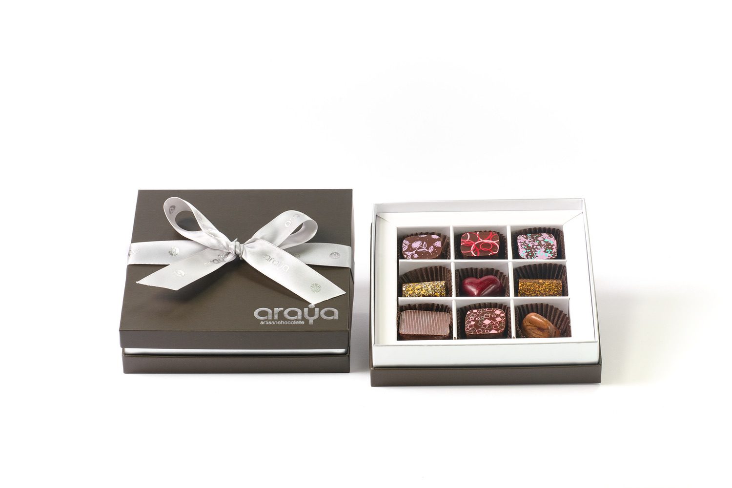 Araya Artisan Chocolate proudly brings you a selection of our most popular flavors. These fresh morsels are carefully chosen, quickly shipped, and beautifully packaged with the utmost attention to detail.