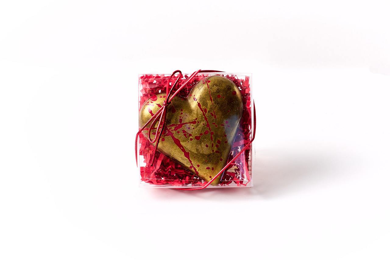 This heart comes inside a beautiful clear box with a red bow.